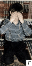 أولاً : نضرب بباطن الكفين على الارض دفعة واحد كما هو واضح بالشكل رقم 1 .