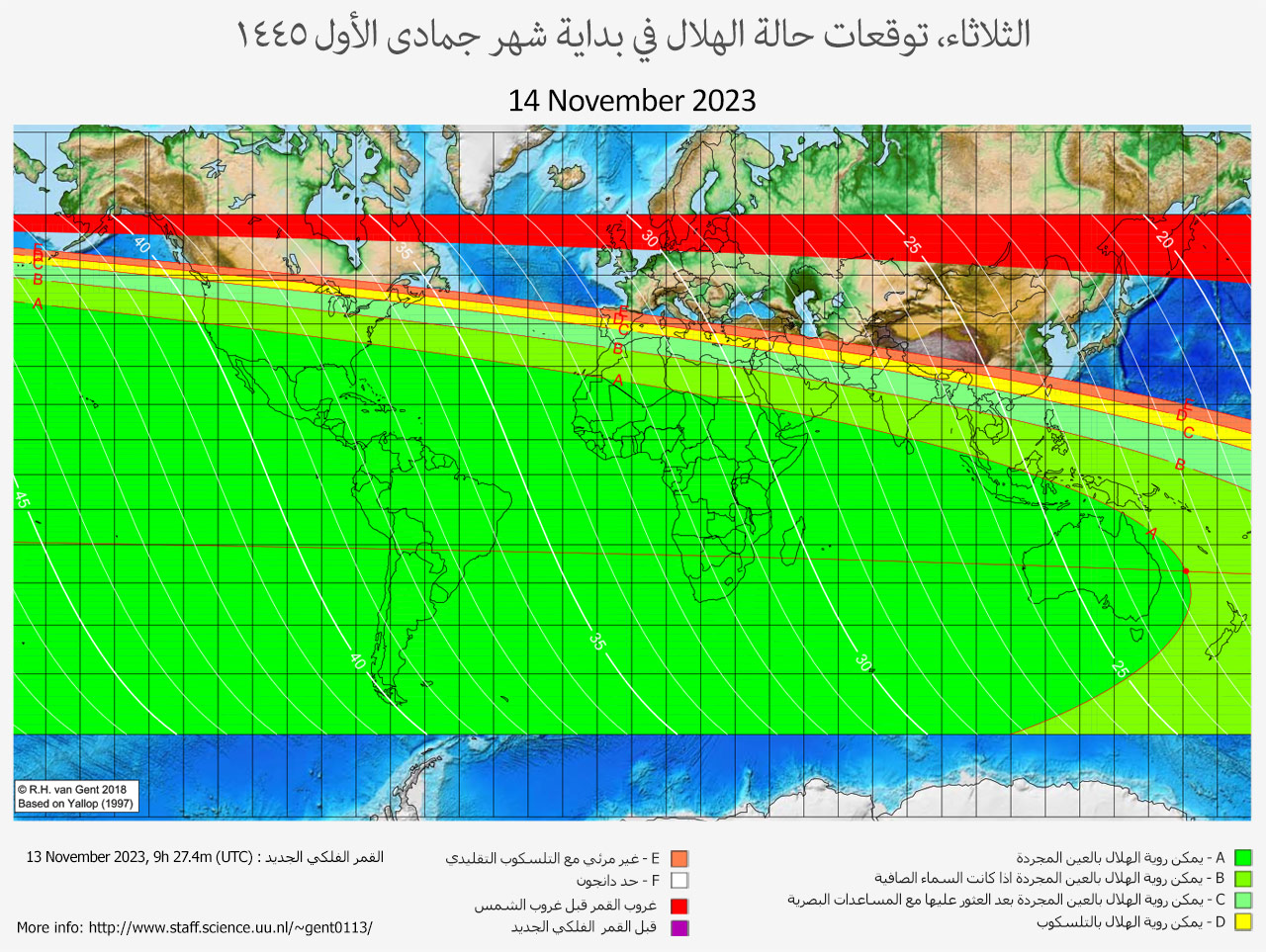 كيفية استخدام الخريطة لرؤية الهلال