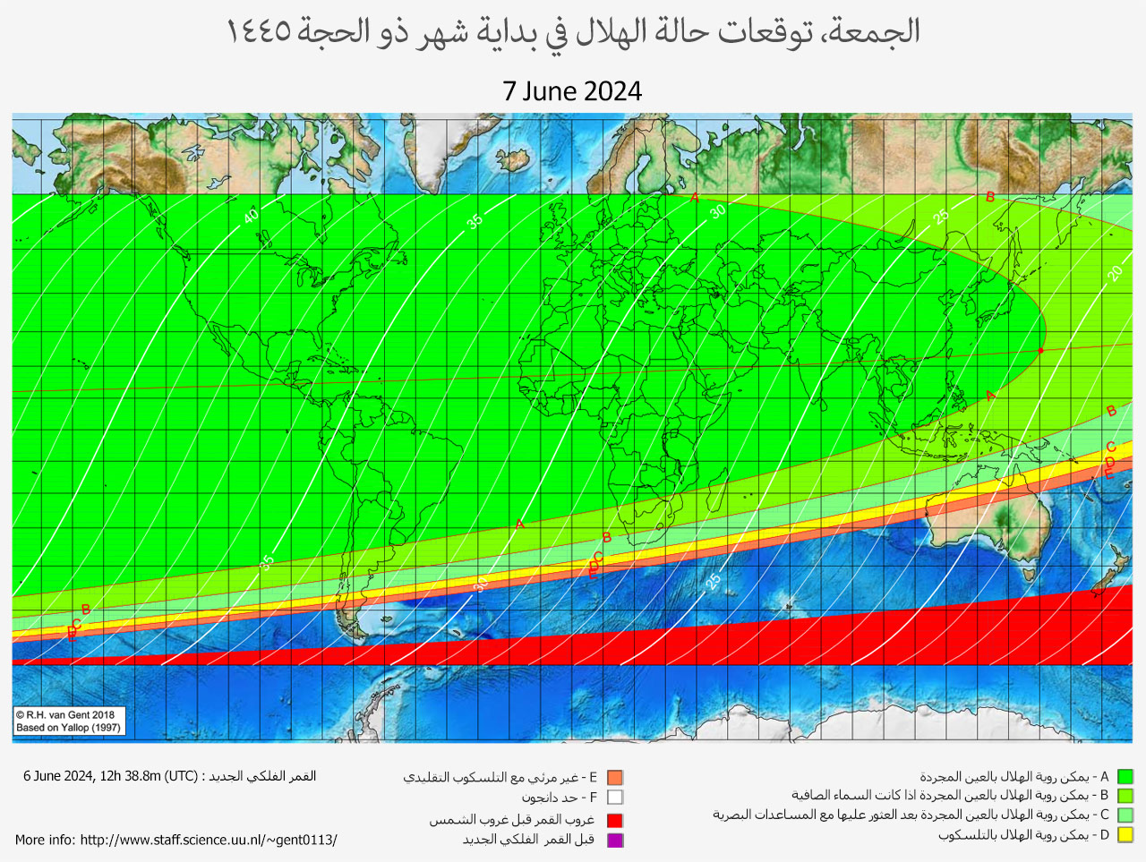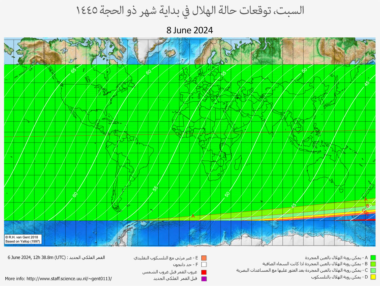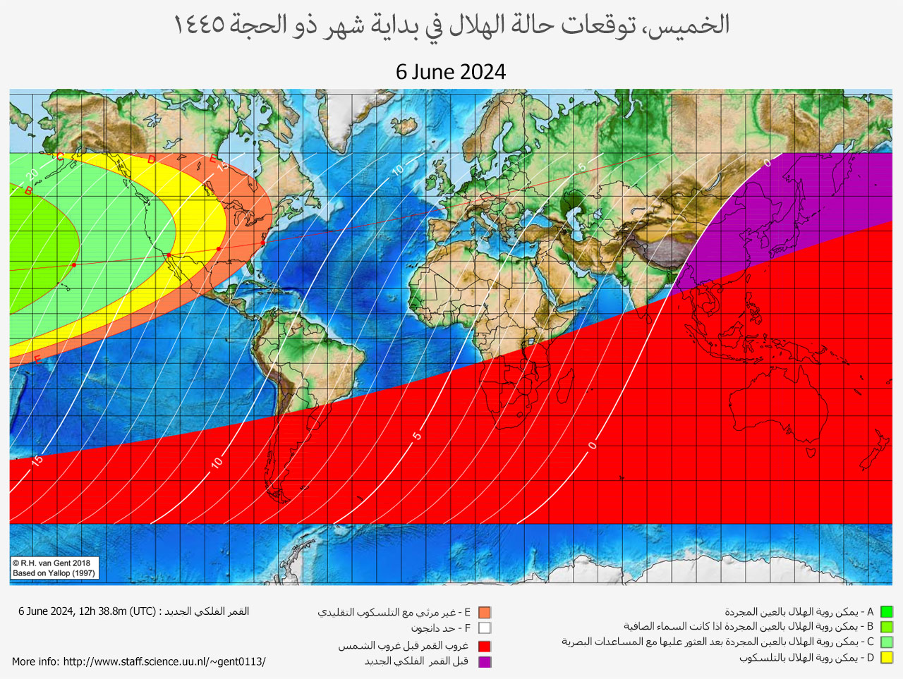 توقع رؤية هلال بداية شهر ذي الحجة 1445