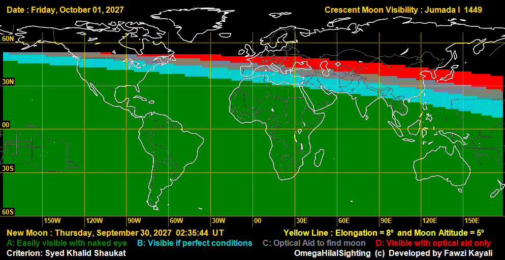 توقع رؤية هلال بداية شهر جمادى الاول 1449