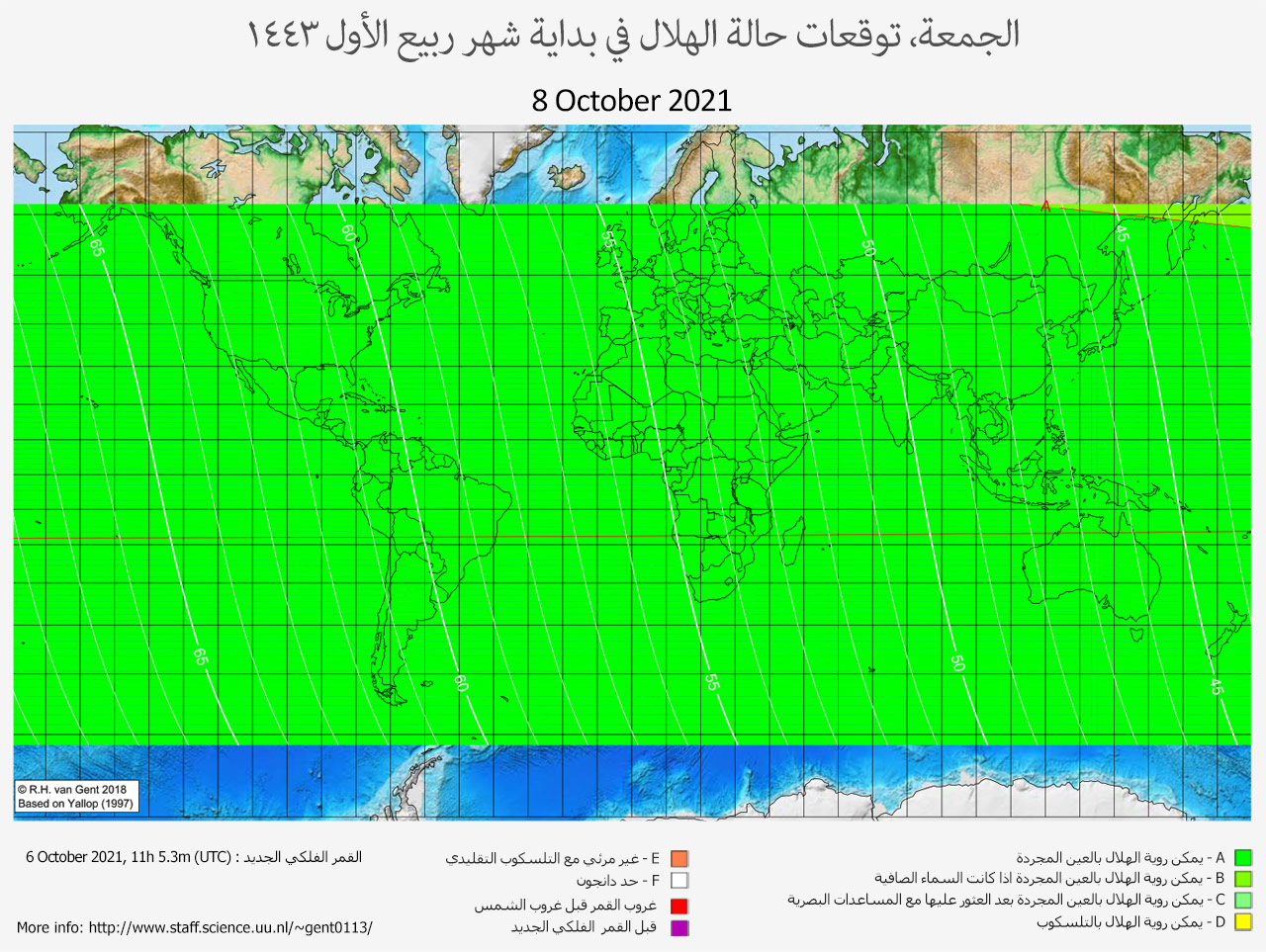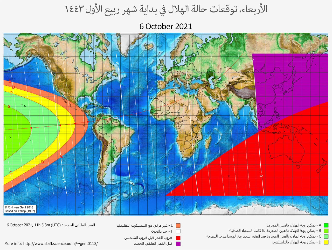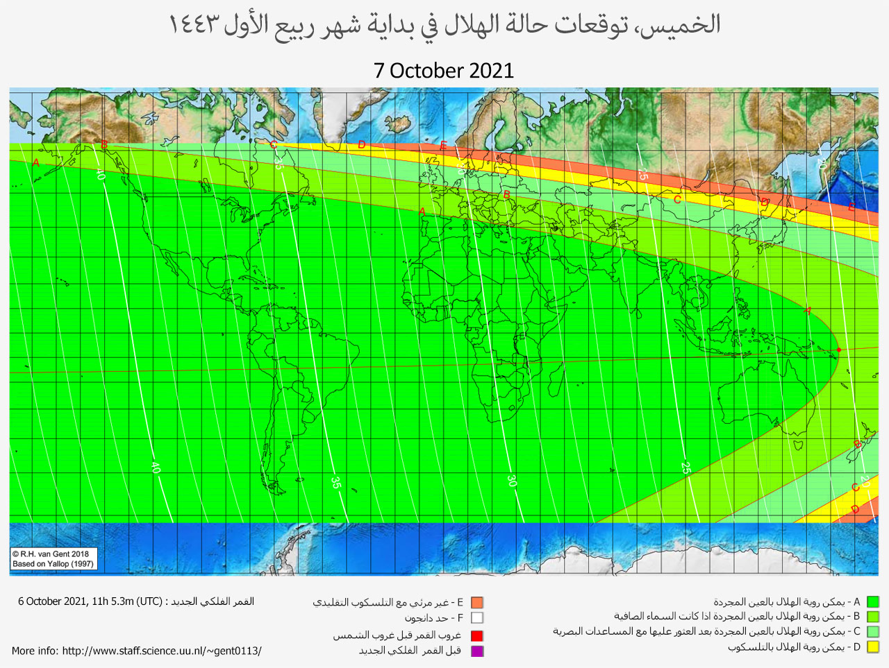 توقع رؤية هلال بداية شهر رﺑﻴﻊ اﻷول 1443