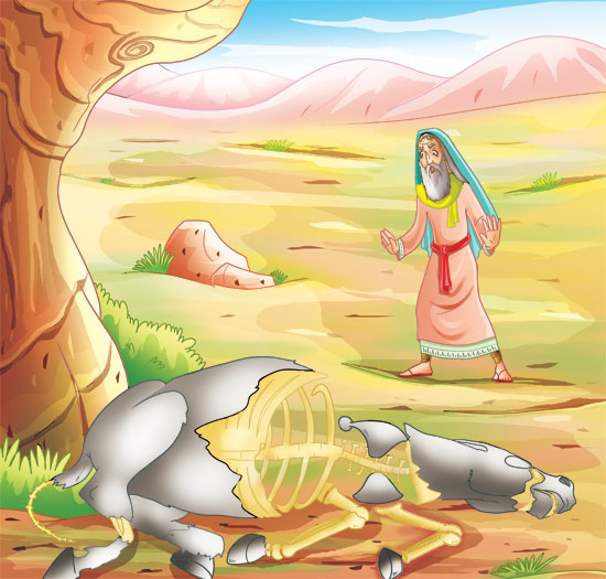نظر عزير الى حماره فرآه قد استحال الى عظام بالية متناثرة بعضها اختلط مع التراب . .