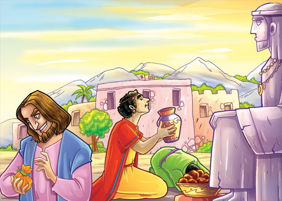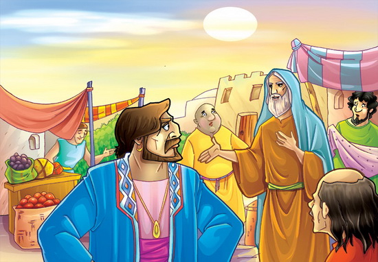 رأى بساتين مثمرة و قد التفت الاشجار حول بعضها ، و رأى خيراً وفيراً ، فالعيون تتدفق من قلب التراب . . و الصخور ، و تسقي الحقول و لكنهم أيضاً كانوا يعبدون الاصنام و يغِشُّون في معاملات البيع و الشراء .