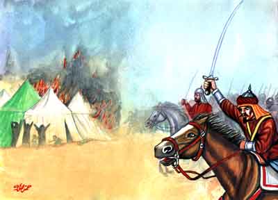 وَيَأْتِي يومُ العاشرِ مِنْ مُحَرَّمِ.. وَالاِِمامُ الحسينُ عليه السلام فِي ساحةِ المَعْرَكَةِ بِأَرضِ كَربلاءَ يُعاني آلاماً وَرَزايا لَمْ يَشْهَدُ لَهُما التاريخُ مَثِيلاً.. فَفِي الخيامِ نِساؤُهُ وأَطفالُهُ يَمُوتُونَ عَطَشاً وَهُمْ يَحلَمُونَ بِقَطرةِ ماءٍ.. وَفِي ساحَةِ المعْرَكَةِ سَقَطَ شَهِيداً أَخُوه أَبو الفضلِ العبّاسُ وَهُوَ مَقطوعُ الكَفَينِ عَلى شاطِىءِ الفُراتِ فِي مُحاولةٍ مِنْهُ لِجَلٌبِ الماءِ إِلى النِساءِ والاََطفالِ.. واستُشْهِدَ ابنُهُ عليٌّ الاَكبرَ.. والقاسمُ بنُ الحَسَنِ عليه السلام.. وأَصحابُهُ الّذينَ آثَروا البَقاءَ مَعَهُ..