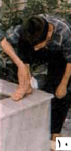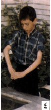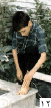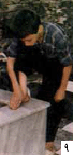 خامساً : نمسح ظاهر القدم اليمنى بباطن اليد اليمنى من اطراف الاصابع الى المفصل ، بما تبقى من بلل الوضوء . كما هو موضح بالشكل 9 ، 10 .