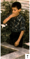 ثانياً : نمسح الجبهة والجبينين بباطن الكفين من منابت الشعر الى الحاجبين وطرف الانف الاعلى ، من الاعلى الى الاسفل ، كما هو موضح بالشكل رقم 2 ، 3 .
