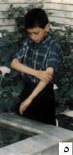 ثالثاً : نغسل اليد اليسرى من المرفق ( الكوع ) الى اطراف الاصابع وليكن الغسل من الأعلى الى الاسفل كما هو موضّح بالشكل 5 ، 6 .