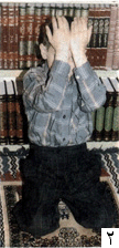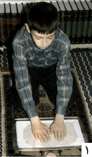 أولاً : نضرب بباطن الكفين على الارض دفعة واحد كما هو واضح بالشكل رقم 1 .